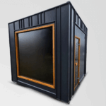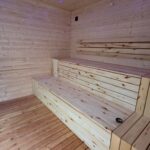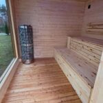 Moderní, prostorná sauna o rozměrech 3×3 m, určená pro 7 osob.